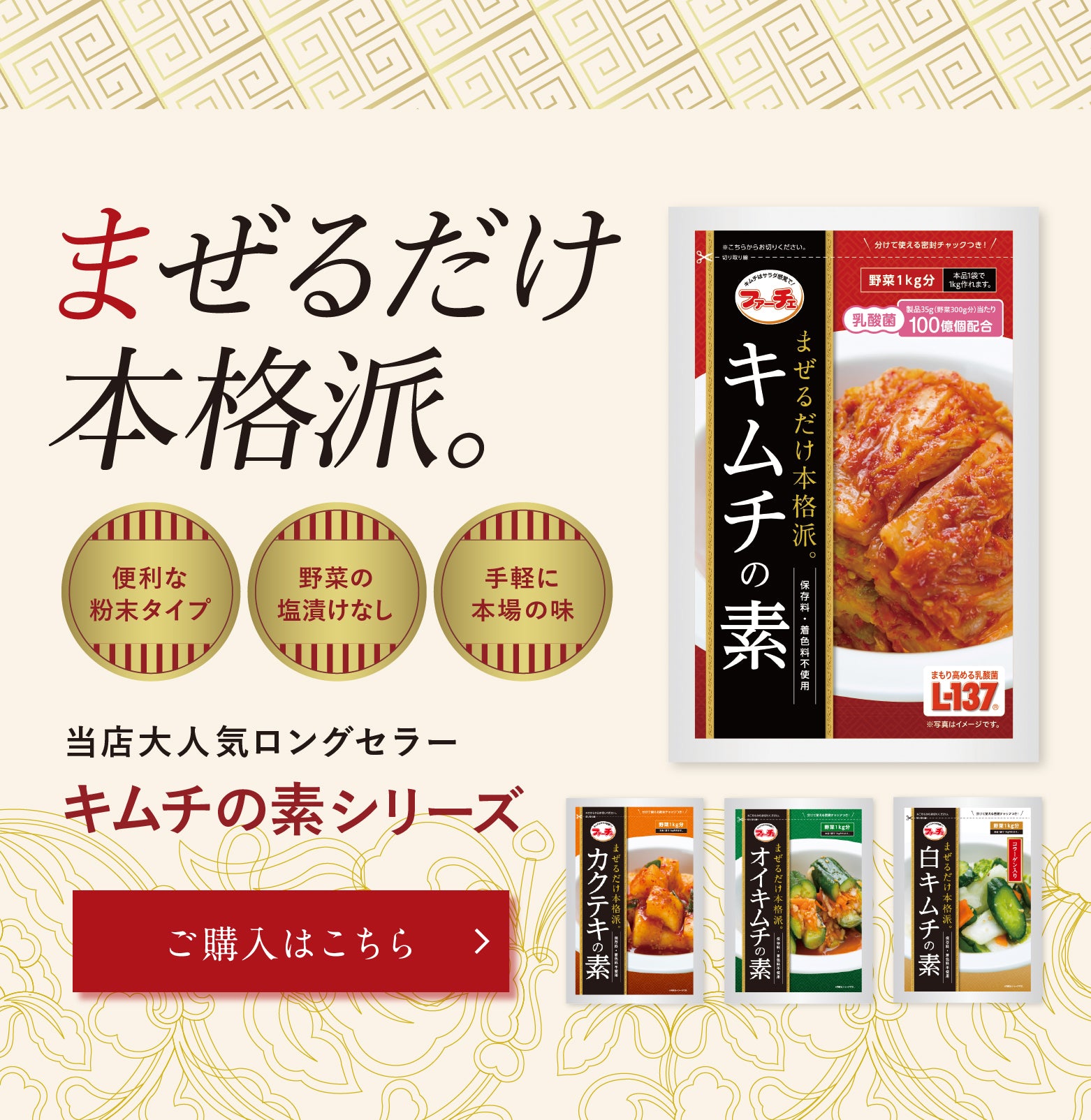 ファーチェオリジナルのキムチの素当店大人気のロングセラー商品ですお手軽に本格的なキムチをご家庭でお楽しみいただけます