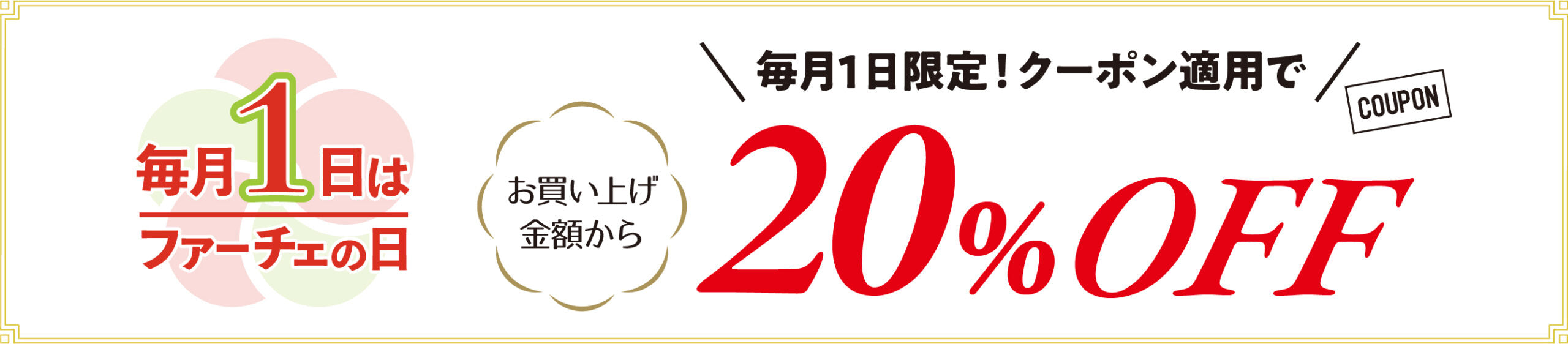 毎月1日はファーチェの日!! クーポンコード入力で20%OFF!!